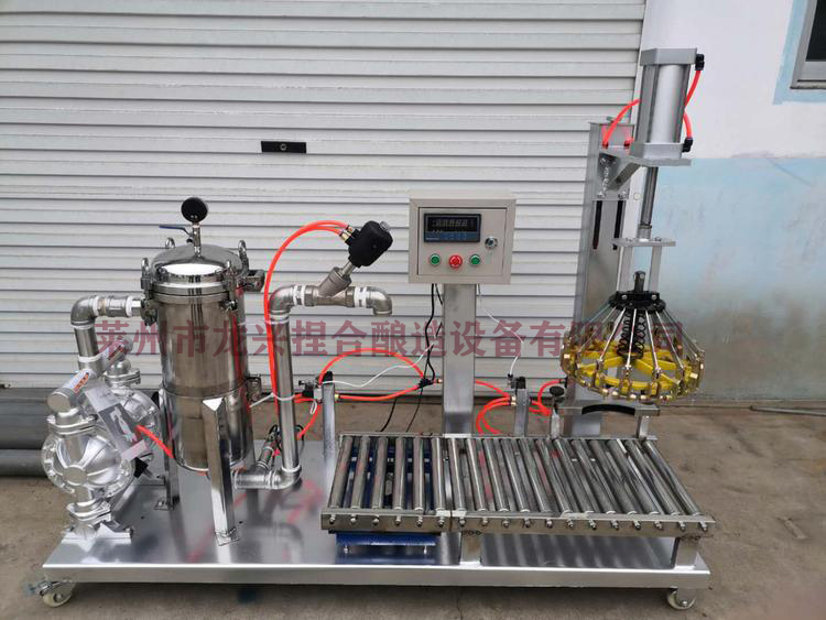乳膠漆灌裝機(jī)常見(jiàn)安裝形式:1、高速分散機(jī)拉缸放在地面上生產(chǎn)內(nèi)外墻乳膠漆,用一根口徑匹配的軟管一端連接固定拉缸放料口,一端連接隔么泵,對(duì)無(wú)過(guò)濾要求時(shí)可直接再用另一根軟管一端連接隔么泵,一端連接乳膠漆灌裝機(jī)接口,安裝完成,接通電源、氣源,設(shè)置重量,人工上桶即可開(kāi)始灌裝;對(duì)有過(guò)濾要求的客戶(hù),一根軟管連接拉缸和隔么泵后,另一根軟管連接隔么泵和過(guò)濾器,第三根軟管連接過(guò)濾器和乳膠漆灌裝機(jī)接口。2、對(duì)于無(wú)過(guò)濾要求,且放料口距地面超過(guò)60厘米+桶高的距離3厘米以上,可直接將放料口與灌裝機(jī)接頭部分對(duì)接。備注:隔么泵和過(guò)濾器客戶(hù)可自行選購(gòu)或者從公司一并購(gòu)買(mǎi),可選擇馬口鐵桶氣動(dòng)封蓋或者塑料桶氣動(dòng)壓蓋。